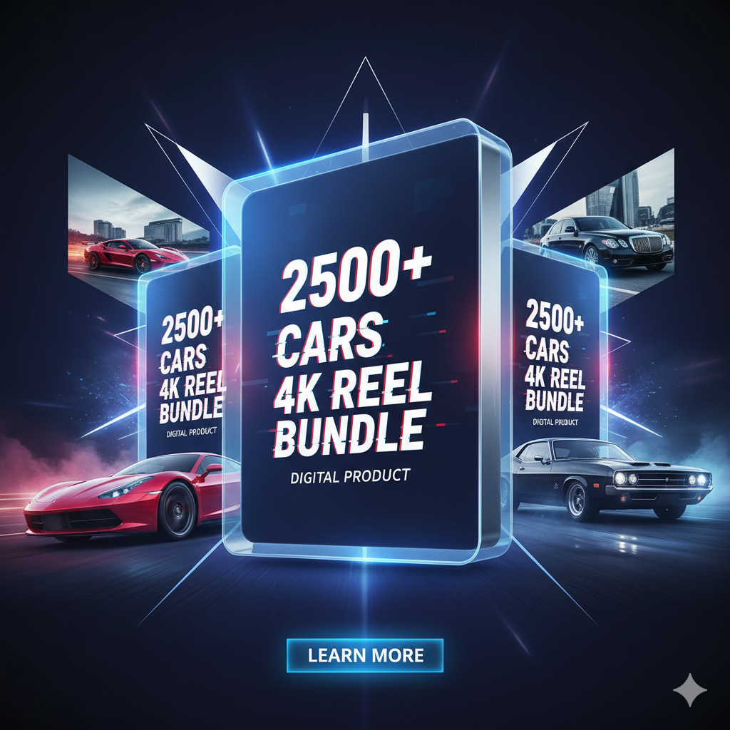 You’ll receive over 2500 high-quality 4K car reels, featuring a wide range of vehicles including sports cars, luxury cars, muscle cars, and vintage classics. These are ready-to-use video clips, perfect for content creators, editors, advertisers, and car enthusiasts.